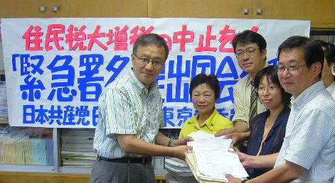 【07.07.03】「住民税増税は中止を」 署名受け取る